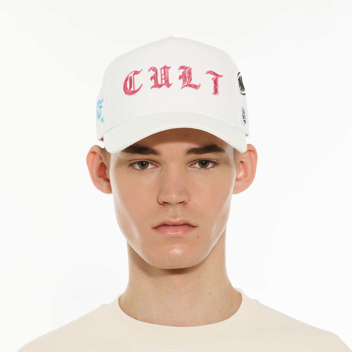 Elevate your fit with our latest mesh back trucker in winter white. This hat is adorned with various vibrant embroidered patches all over the hat. The adjustable strap ensures a perfect fit for every head size, while the breathable mesh back fabric keeps you cool even on the hottest days. - Adjustable closure