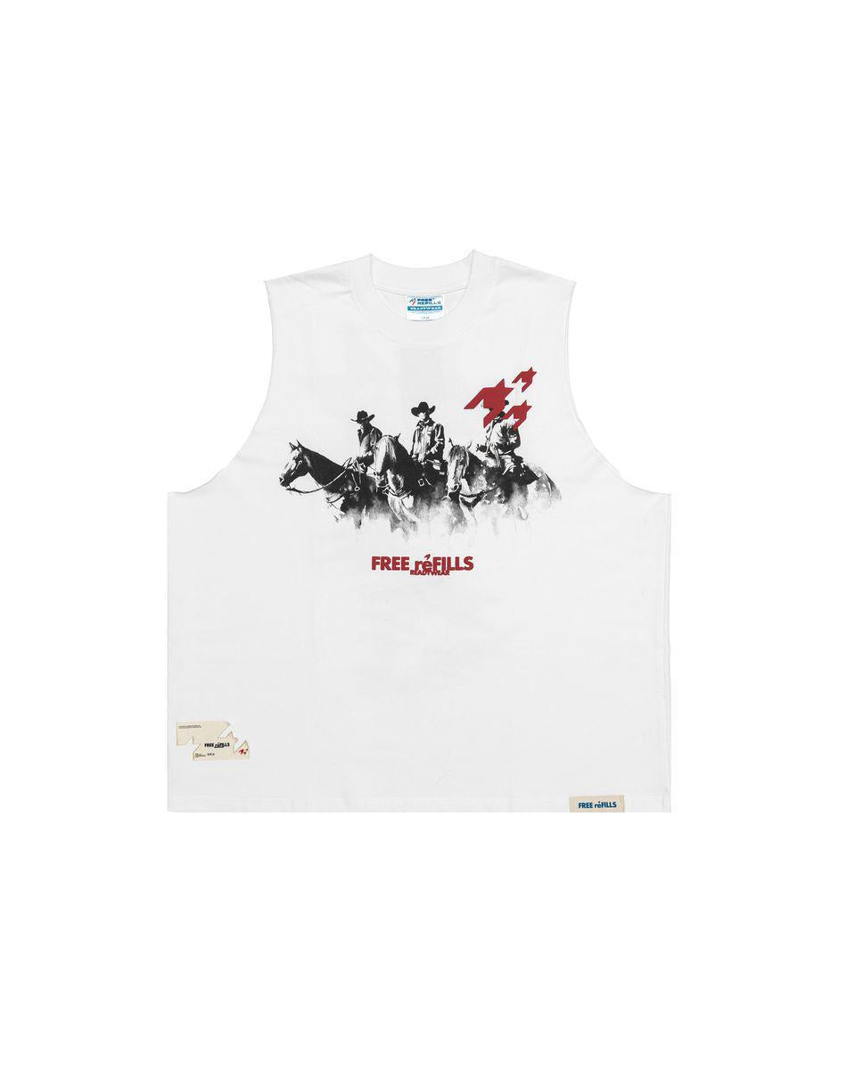 High Quality heavyweight 100% cotton cut off tank. Complete with vintage fade wash, outside logo die cut woven label and damask woven neck labels.