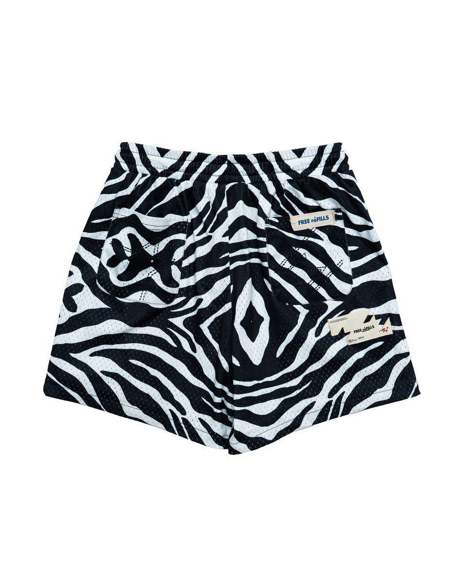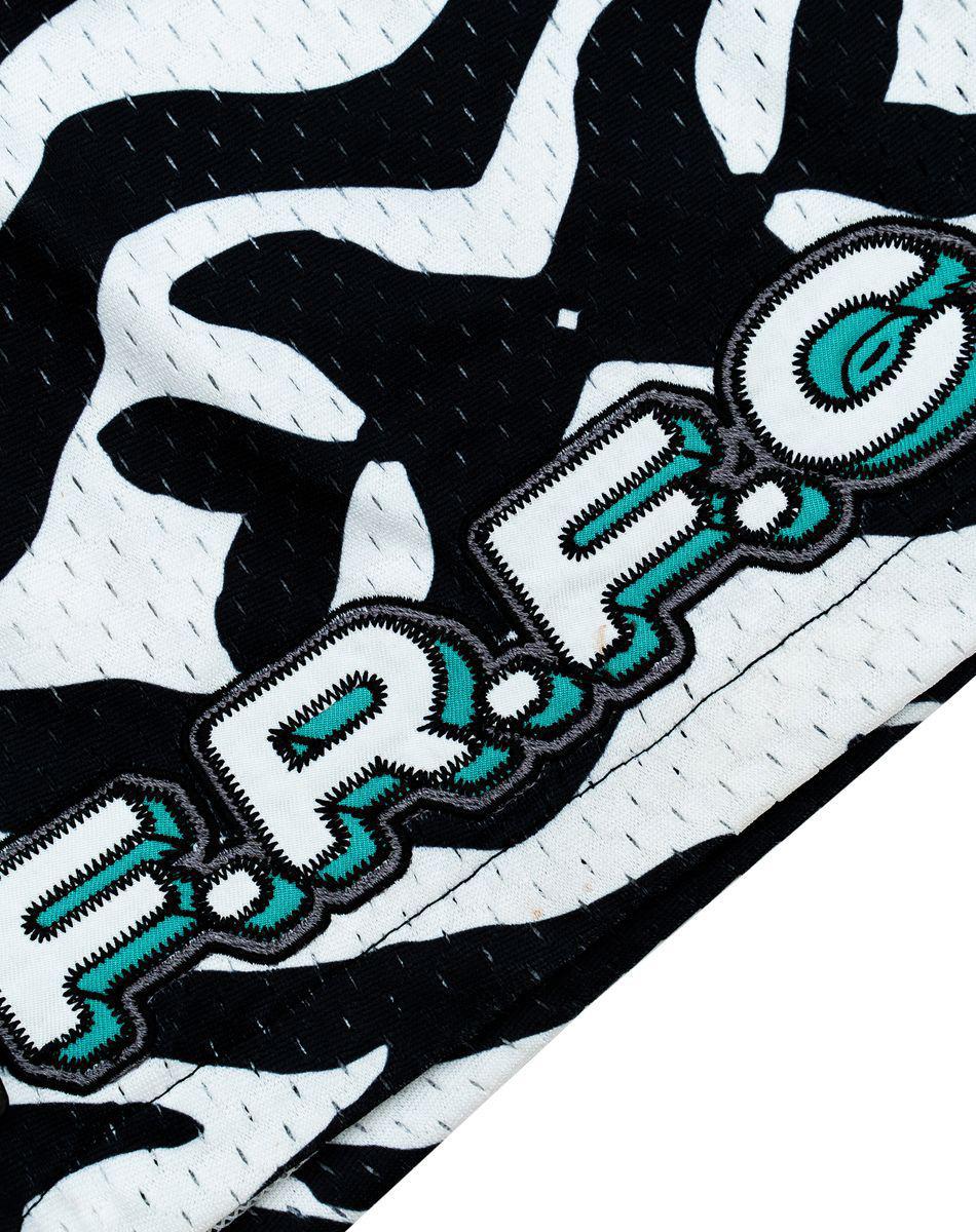 High quality lightweight mesh shorts with all-over zebra print. Finished with FRFC graphic hits, teal drawstring, and branded embroidery. Complete with outside logo woven label and interior damask woven labels. True to size fit.