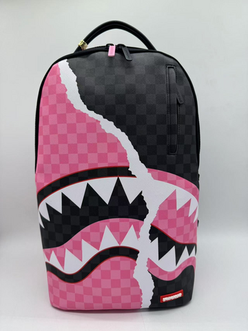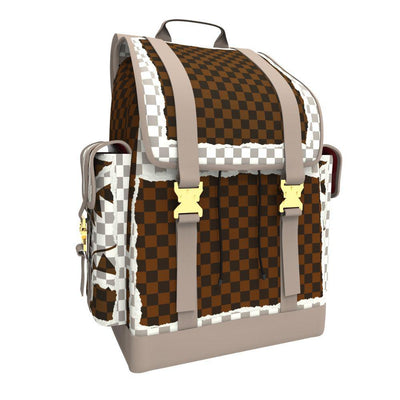 CREAM AND BROWN TEAR CHECK BACKPACK