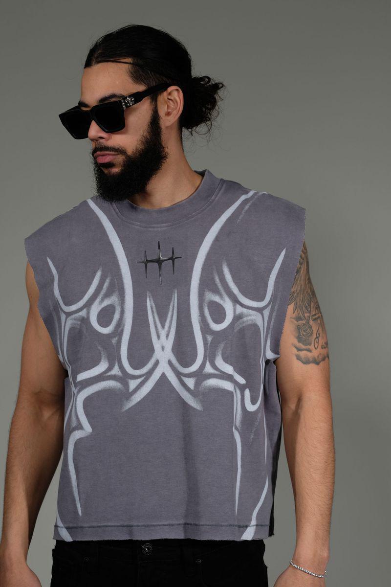 Washed Effect Heavyweight Textured Tank Top, Over-sized Screen Prints