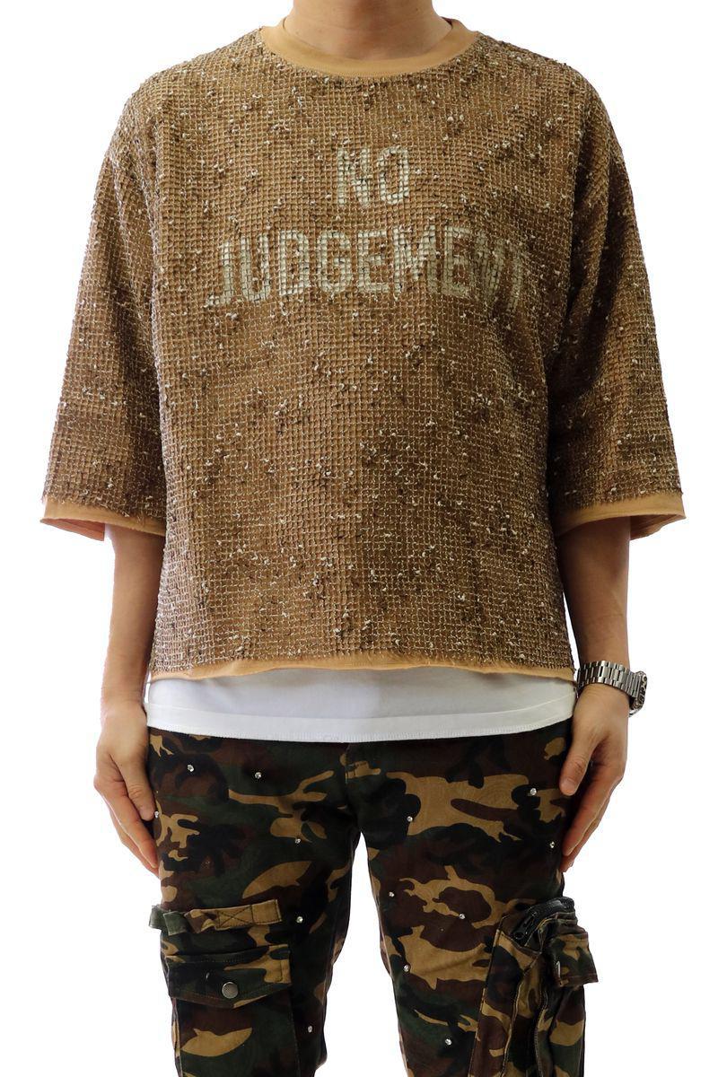 Break boundaries in bold comfort. This cropped 3/4 sleeve T-shirt blends soft cotton mesh with a textured overlay for a unique, high-street aesthetic. Featuring “NO JUDGEMENT” Print in vivid orange across the chest, it sends a powerful message with laid-back attitude. The relaxed fit and unfinished hem add an effortlessly raw vibe, making it the perfect piece for statement layering or solo wear.