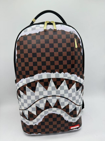 CREAM AND BROWN TEAR CHECK BACKPACK