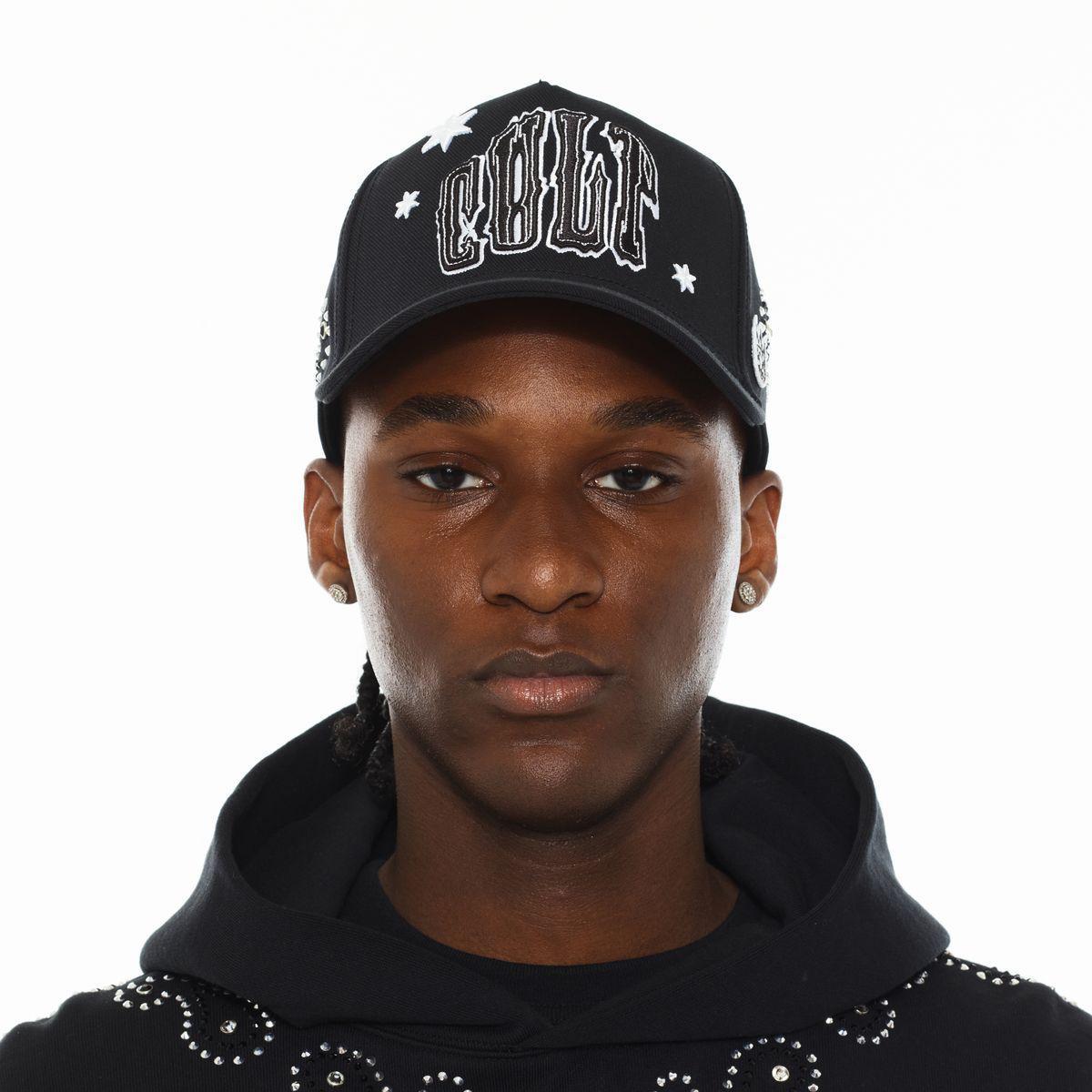 This Cult X El Alfa collab 5 Panel A-Frame hat features a detailed "Cult" embroidery on the front, accented with a paisley pattern all over the hat crafted from white and black stones. This is the perfect hat to pair with our "Paisley" tee from our Cult X El Alfa collection. - Regular fit - Coordinating apparel available
